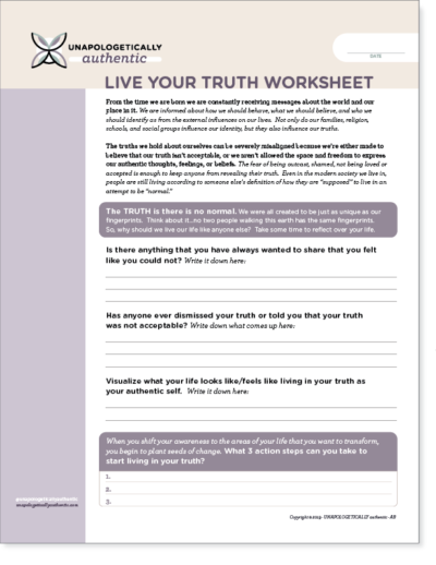 We were all created to be just as unique as our fingerprints. Think about it…no two people walking this earth have the same fingerprints. So, why should we live our life like anyone else? Download this worksheet & take some time to reflect over your life.